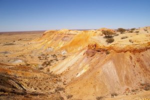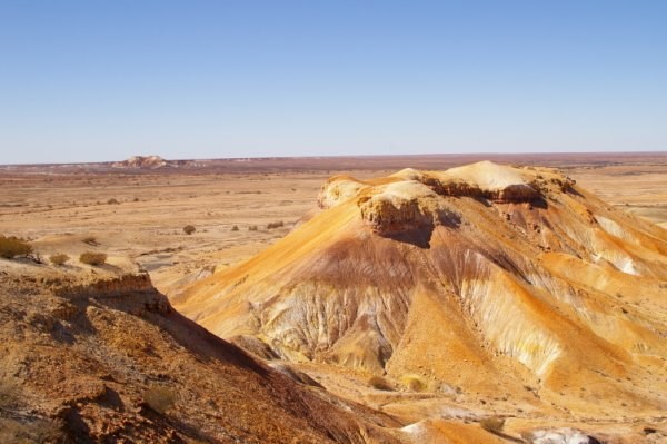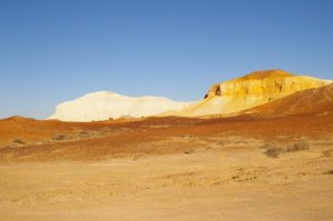 Wed. 21/05/08 we packed up camp and left the caravan park at 8.10 am for a trip up to the Painted Desert stopping to take photos for the site and ourselves, we stopped on the side of the road a marvelled at the Moon Desert thinking of the different movies that had been made there. We travelled from Mount Barry through to Arckaringa the turned right, what a sight, we went to the lookout and took photos then travelled back to Mt Arckaringa and did the walking trail to the top and back to the car park, we left straight away as we parked under the only shade for miles and some others may have liked to use it. Travelling back via the Stuart Hwy we did the Breakaways loop (nearly as good as the Painted Desert) back to Coober Pedy and stayed another night in the caravan park pigging out on the pizza again.