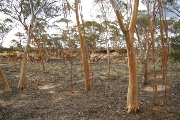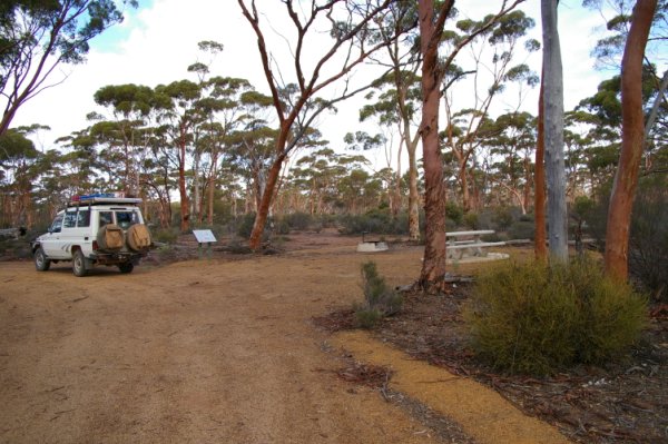 Mon. 26/05/08 up and gone by 7.00 am turn left after 146.6 km and then right, call into Balladonia to use the loo and then on to Norseman through the road blockade (cops everywhere). We have been trying to do The Granite and Woodlands Discovery Trail for years now, every time we try it rains, well today its fine, so off we go calling into all the listed sites there are 16 of them some just a site to stop and picnic at and some to camp. We had a walk around Disappointment Rock, called into McDermid Rock and the Breakaways, The Breakaways site is very nice with a lot of camping sites table and chairs and a dunny. These are the places we will do with the little Supreme Getaway van, so we got to Hyden, fed the dog had a couple of beers at the pub and then off to Bruce Rock for the rest of the week.