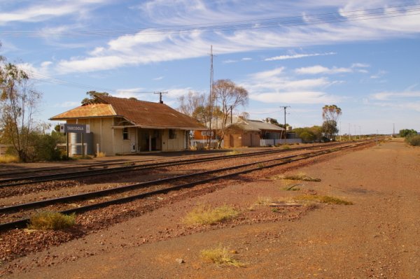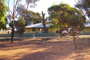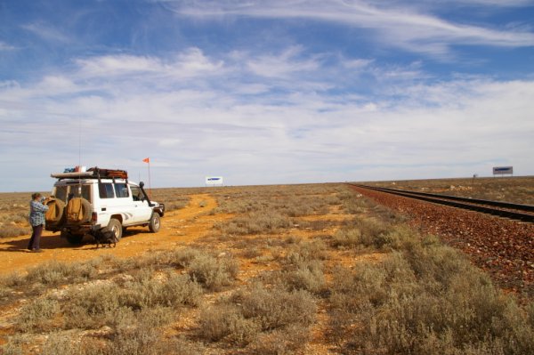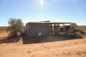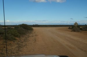 Fri. 23/05/08 we got up and had a look around the crash site taking some more photos, we left camp at 8.12 am calling into Barton Siding for a look around, this siding is well used by the rail workers, and it has it own power and water supplies. There use to be an old railway worker living in a shanty with yards made out of sleepers and had a mass of dogs, we where told that he was only taken away around two weeks earlier. We got to Bates the site of another train derailment there where 10 carriages lying on the side of the tracks. Travelling on down the track we bumped into a couple in a Troopy, as you do in the bush, so the same thing happen, we get out and talk for three quarters of an hour, anyway the couple where the managers of Maralinga, they had driven down to Watson to get there mail and were having a look around and then travel up the grog road back from Ooldea to Maralinga, it was a very nice and very interesting chat. We had just left them when the UHF sprang to life, some people being escorted by a couple, from Ceduna tagging caves. ??? There where a couple of monuments to have a look at one for Daisy Bates and another for the joining of the railway lines east to west in 1917, the track was down to two wheel tracks only, it faded away after Ooldea you wonder if Maralinga had anything to do with it. LOL We rolled into Cook at 4.20 pm and had just had a small rain shower, had a look around town and then called in to the managers house to find out were we could camp. There was a camping spot under some trees or a powered site and they also offered us a house, we took the house. Getting back to the Troopy the front left was flatter than at the start of the day, so we drove to the old rail workers house, Robyn made camp (we slept on the floor in the kitchen), I changed the wheel then started to repair the flat, just as I started to pump up the tyre and down came the rain so I left it till the morning. (Dirt and water mix well) nice night hot showers good food drinks and back to watching DVD’s