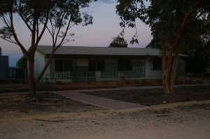 Sat. 24/05/08 up at 7.00 am and had a good walk around the town (it will be a pity when they’re all gone), got back to the house and pumped up the tyre, cleaned up and loaded up, we were gone at 8.50 am. We travelled down to Denman, Deakin, (I asked Robyn “why have we been here twice in our lives” LOL) Reid and then to Forrest. Forrest, we got a liking to this place last year, we have marked it down as a retirement job managing the Airport. The same managers where there as last time, they had signed up for another six months, we decided to stay in the lap of luxury and stay in one of the self contained houses, House number 2 a little bit expensive, but what the heck, first night in a real bed, we had tea, some drinks and watched crap on telly.